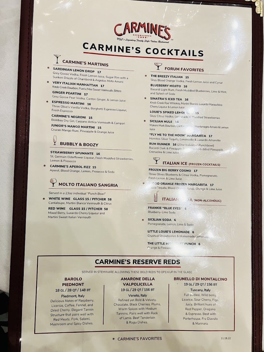 The menu at Carmine’s in Las Vegas reflects a classic Italian family-style dining experience, offering generous portions meant to be shared. It combines hearty, comforting dishes with carefully crafted flavors that invite leisurely meals, whether for a weekend brunch or a relaxed dinner gathering.